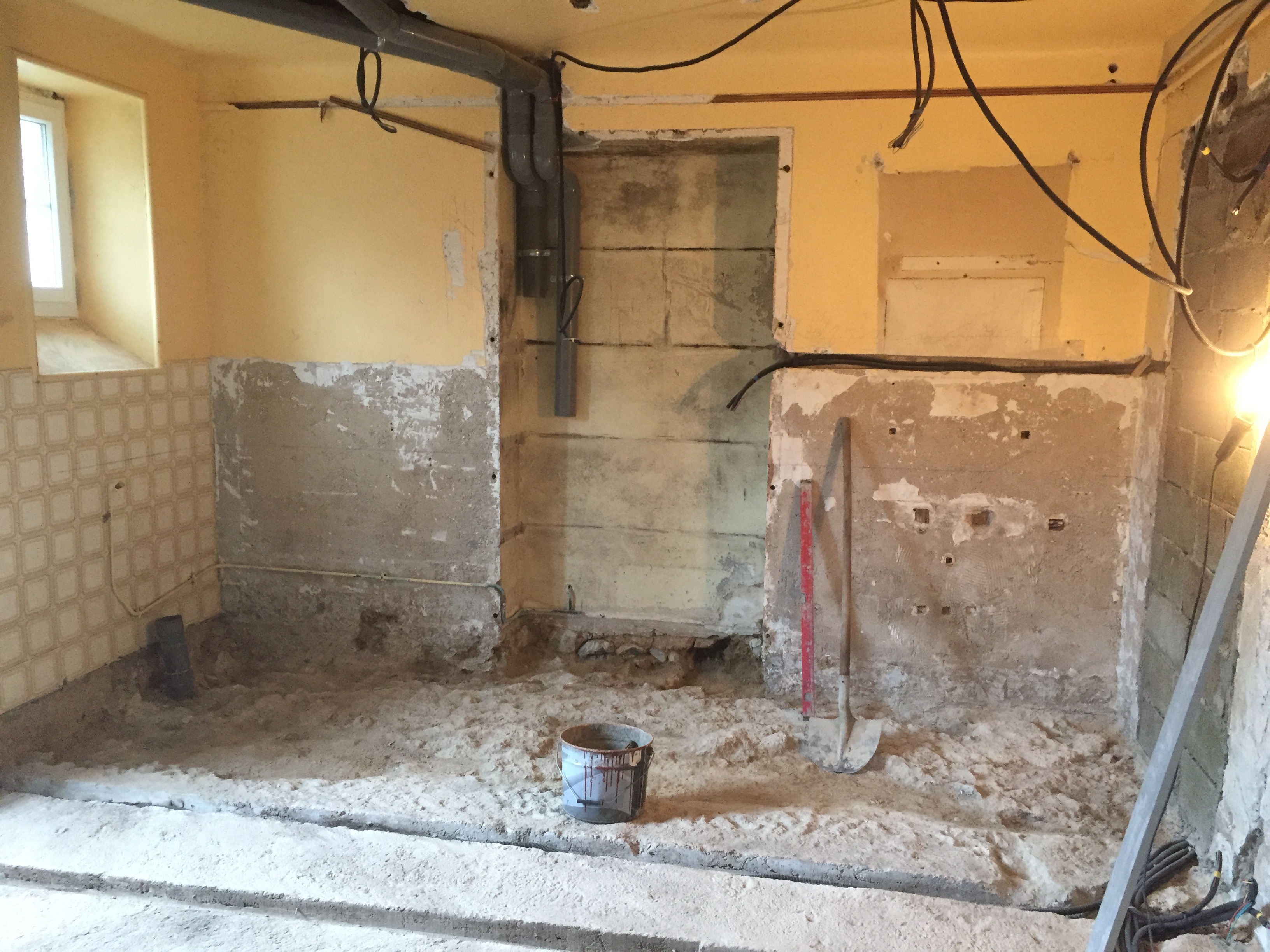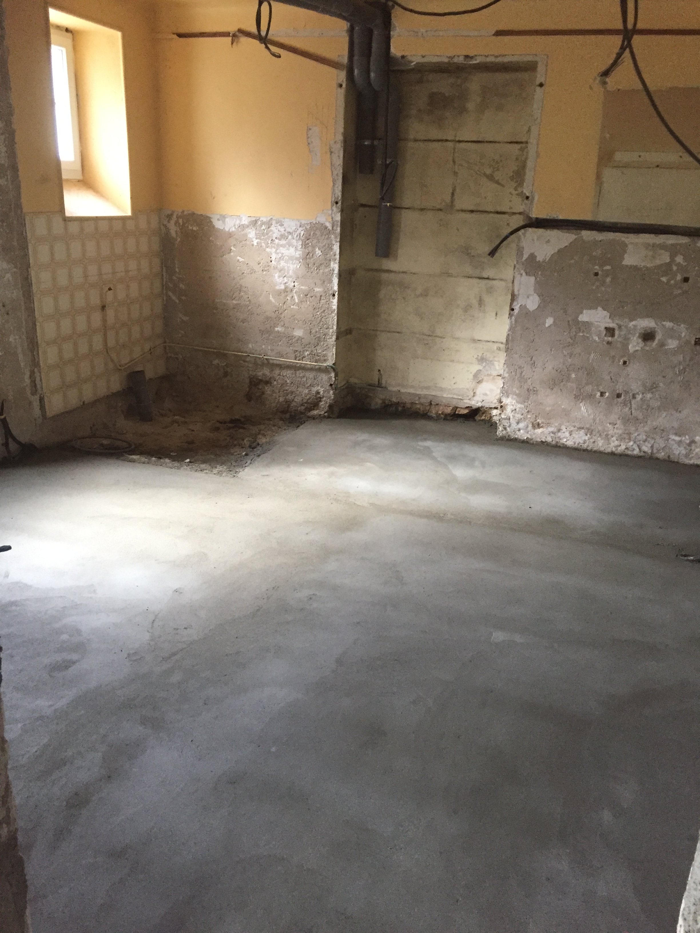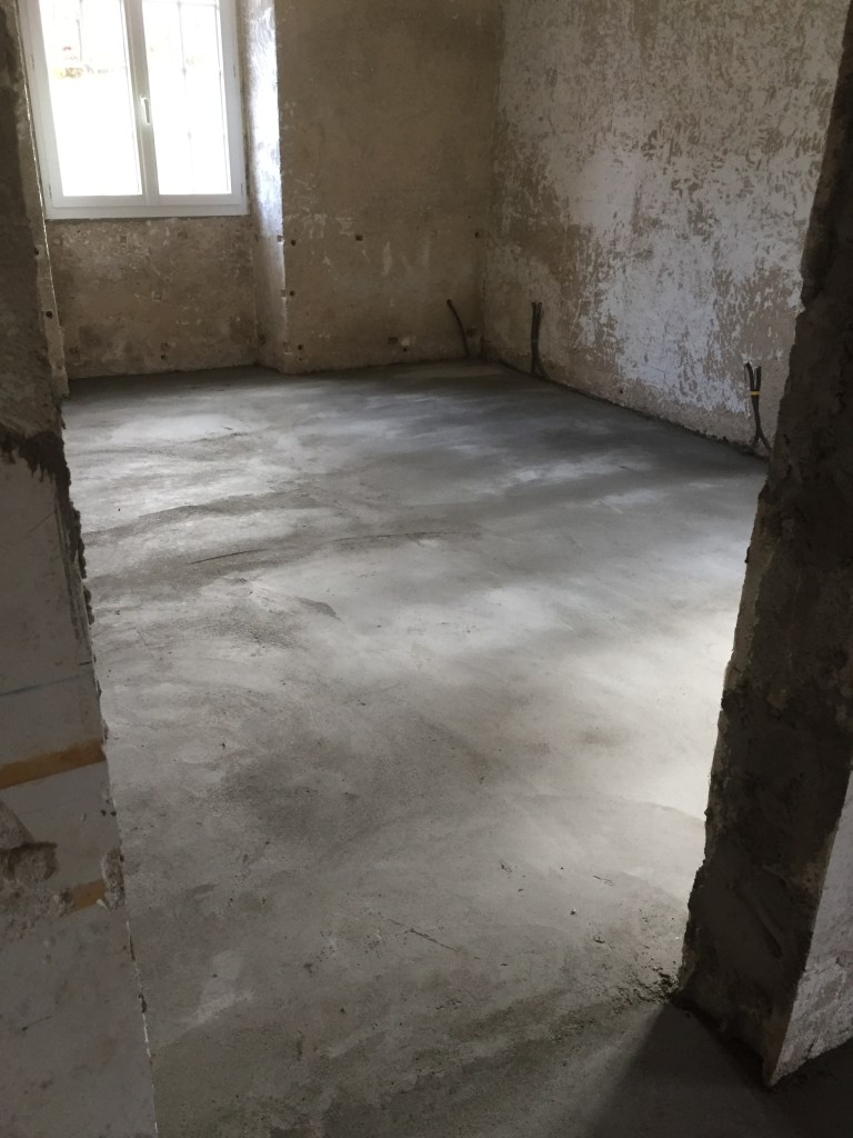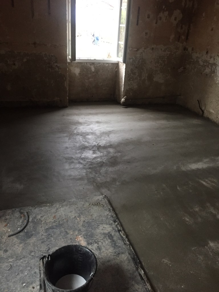Dernière chape… le chef de chantier s’essouffle ! Nous devons prendre la relève… sur 1m²… entièrement refaite par le chef de chantier… n’insistons pas !