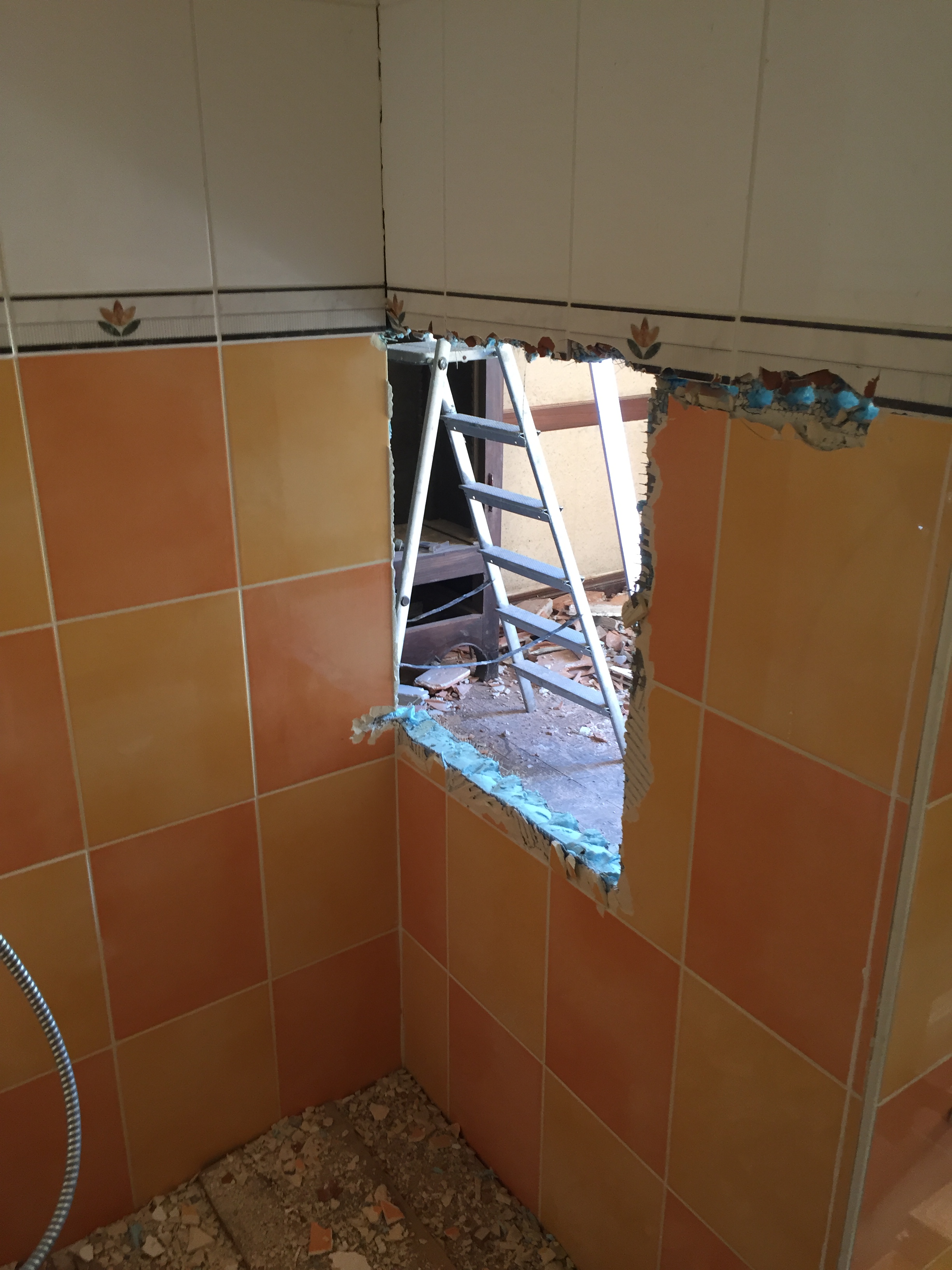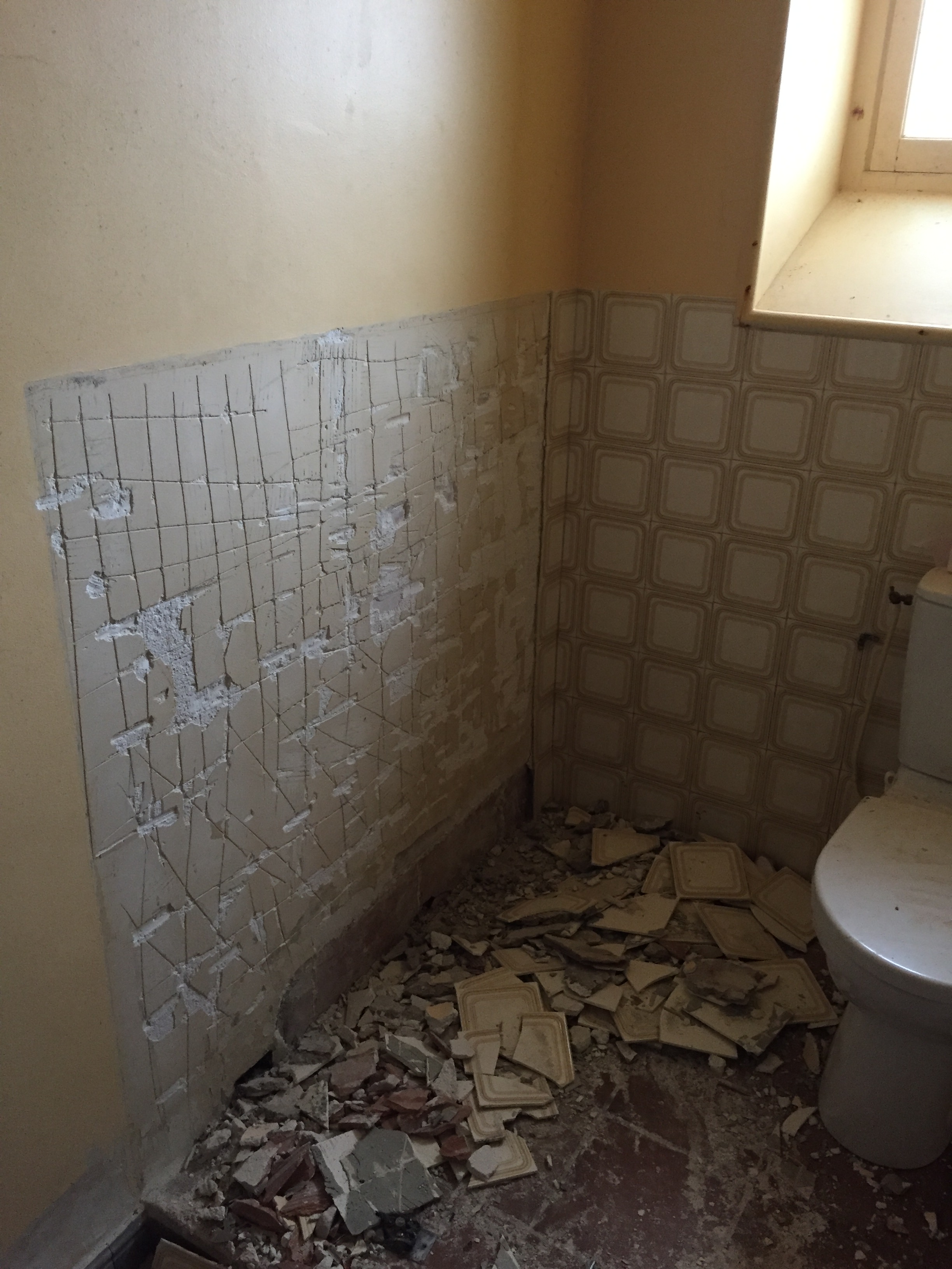 Alors pourquoi pas la salle de bain, afin de nous conformer à la loi en se débarrassant de ce carrelage orange, totalement interdit sur le marché, depuis la fin des années 70 !