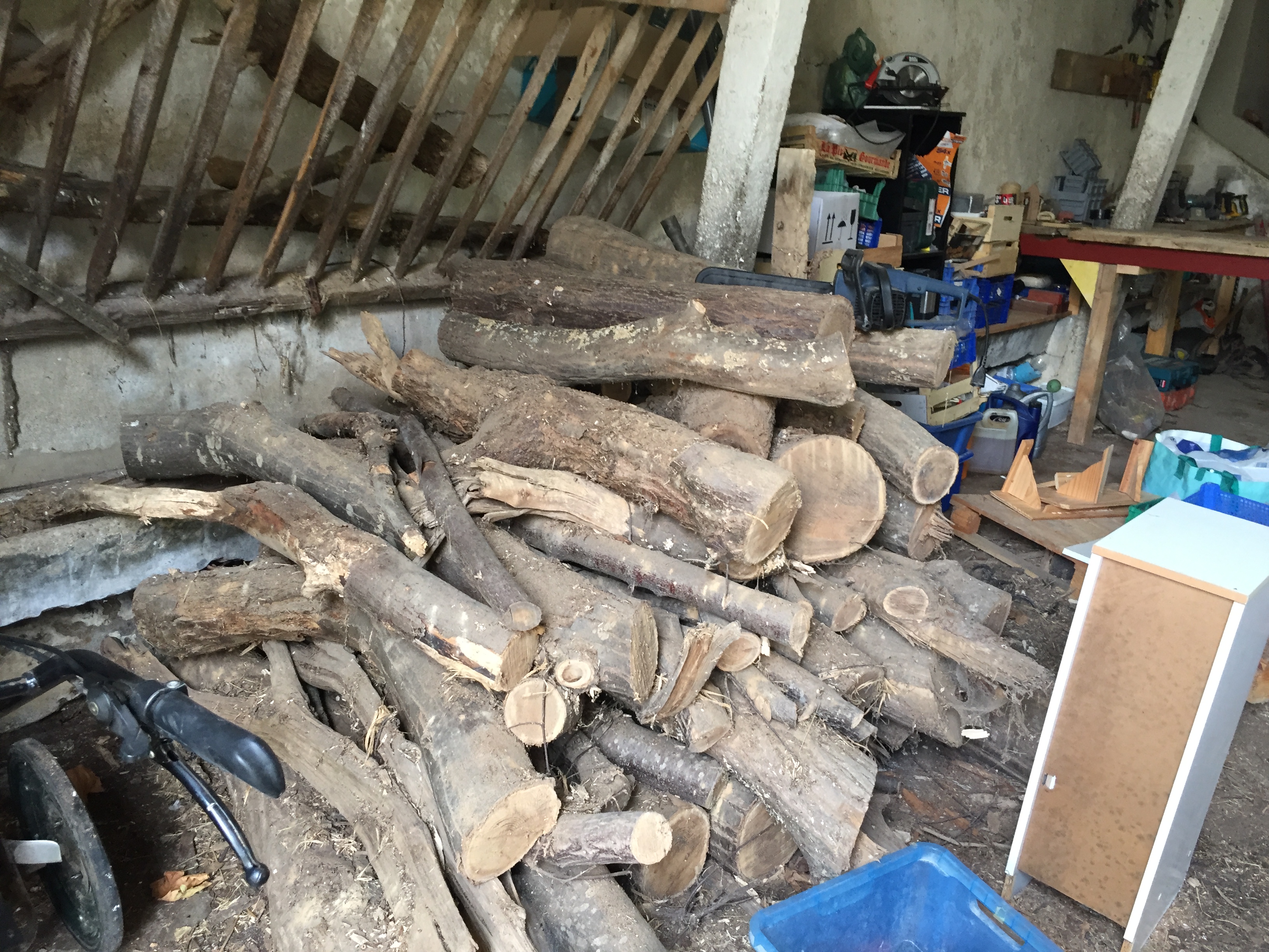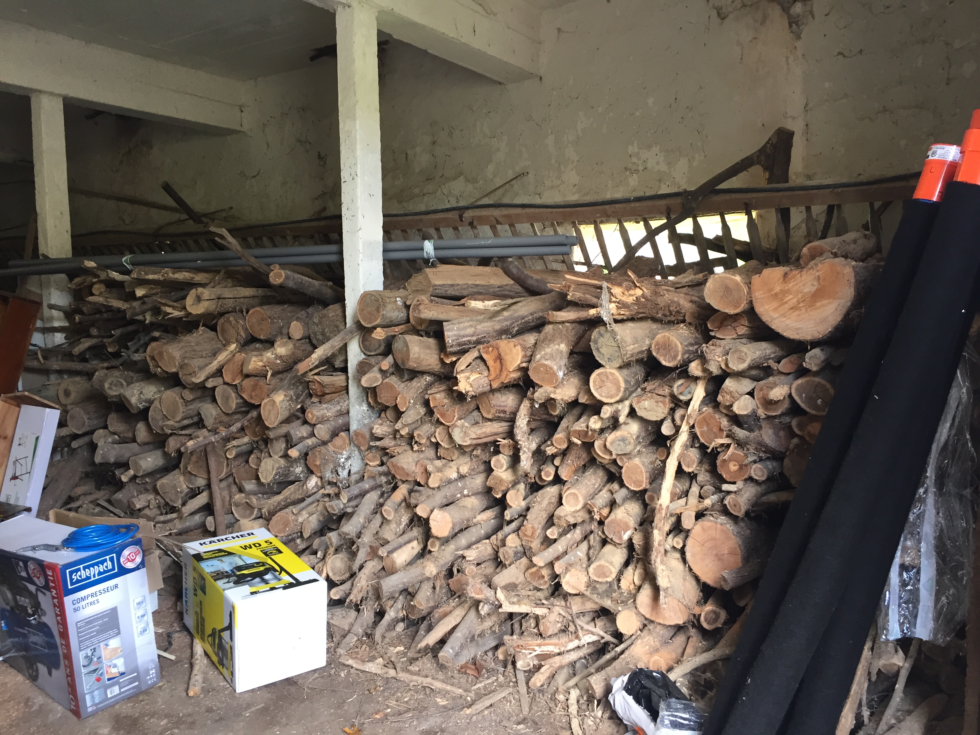Entre le bois dans l’étable et les 4 arbres abattus, nous voilà à la tête d’une bonne cinquantaine de stère de bois… mais tout n’est pas encore coupé…
