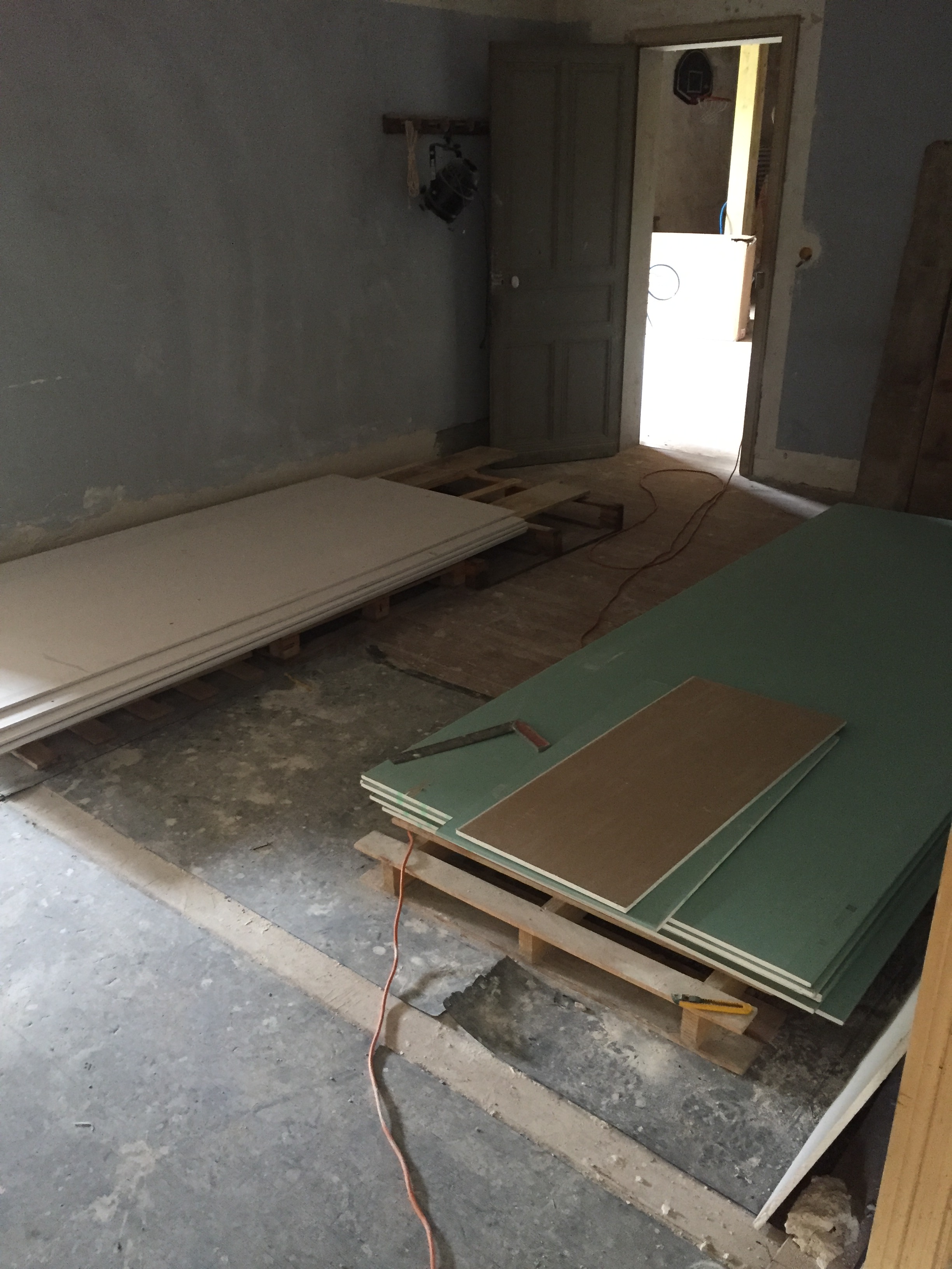 On remonte à l’étage, pour utiliser les plaques de BA13 qui nous restent…