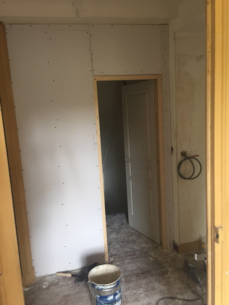 Une cloison bien isolée et une porte phonique sur le pallier de l’escalier qui nous séparent des futures chambres d’hôtes, afin également, de ne pas se déranger les uns les autres…