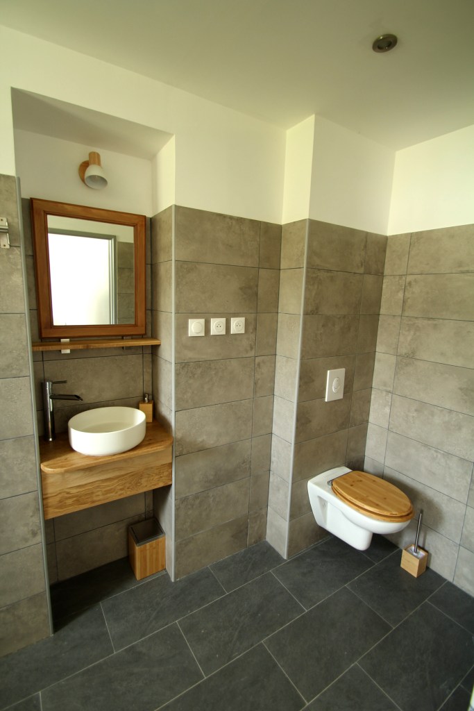- Douche à l’italienne, lavabo et WC