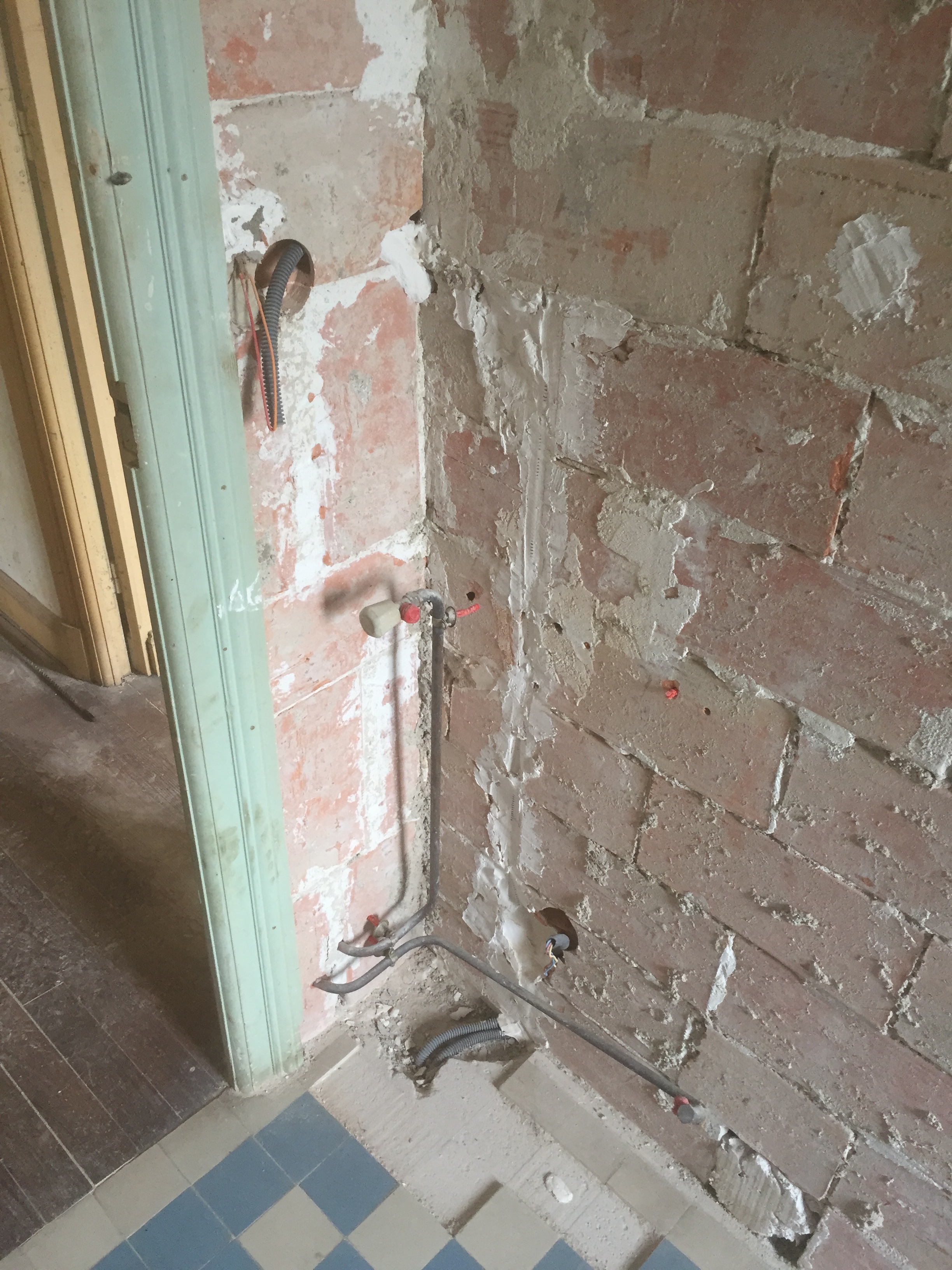 Mais le pire, c’est le passage de gaines dans la brique creuse… avec toujours l’angoisse que la cloison vous tombe dessus !!!