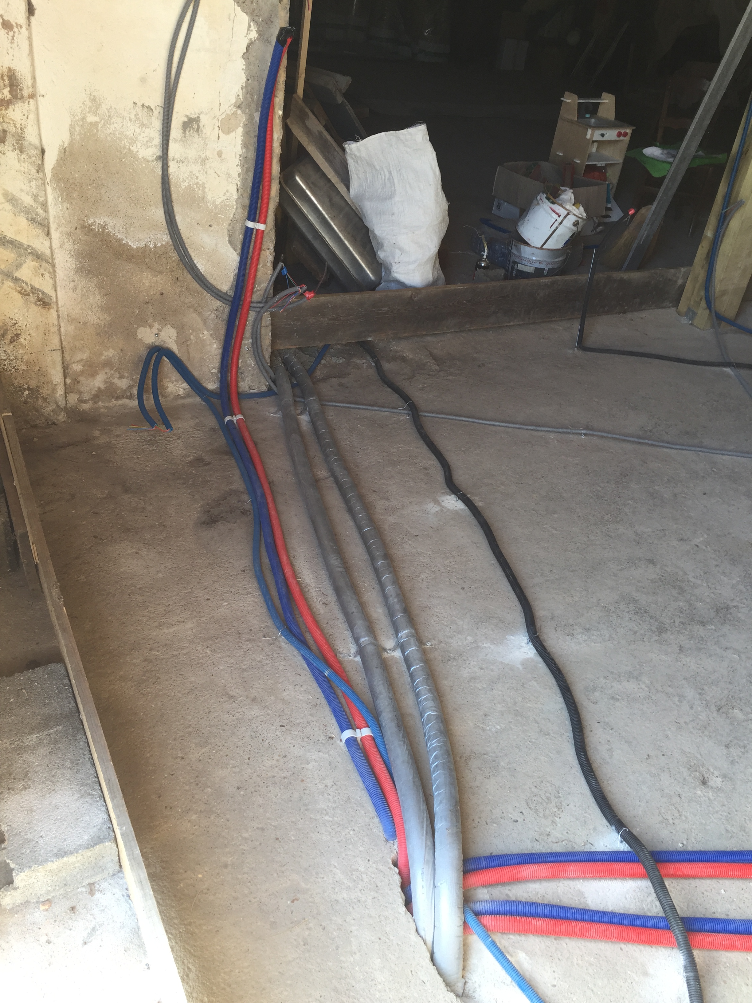 Passage de la plomberie, et fixation des gaines au sol…