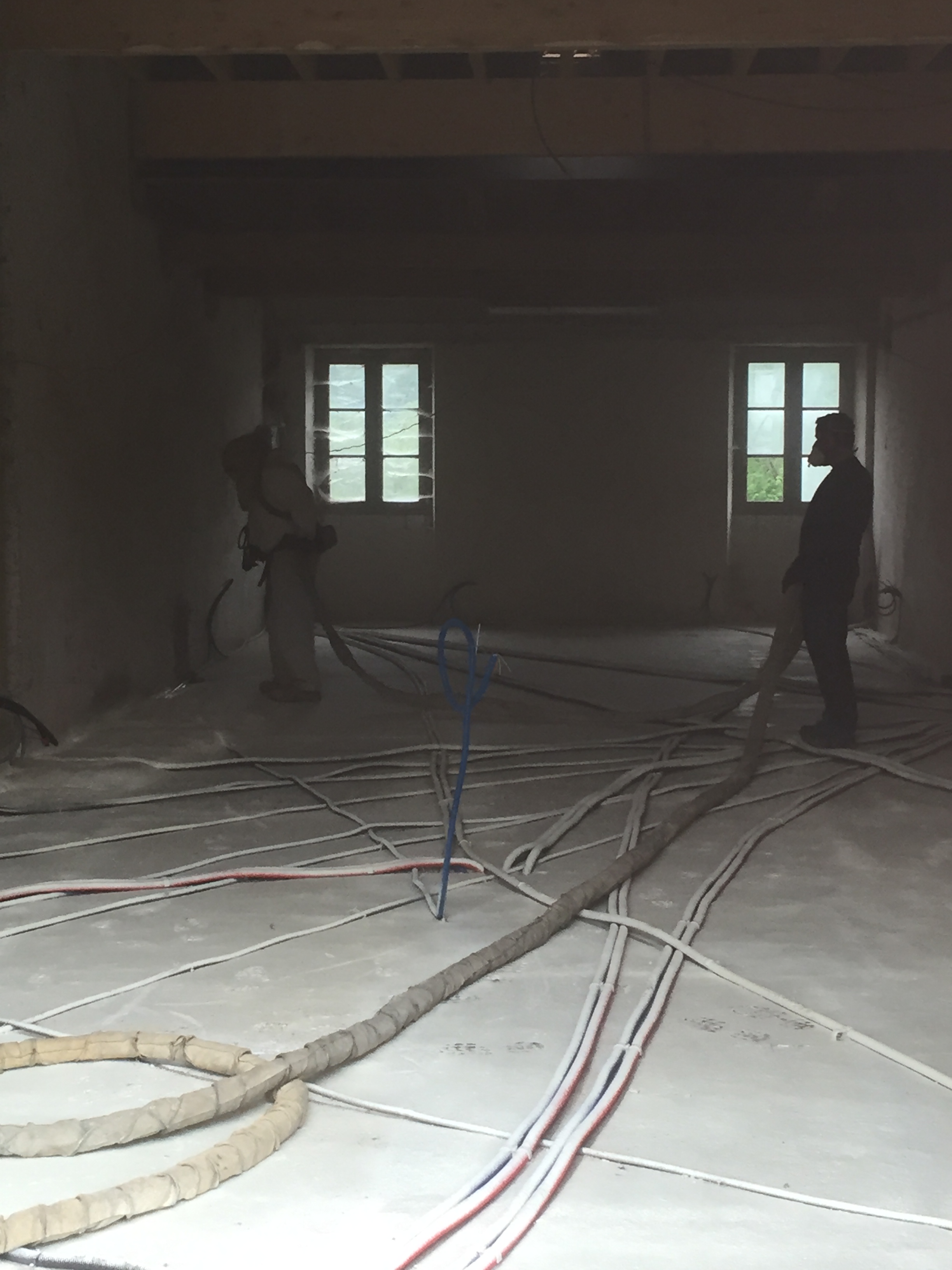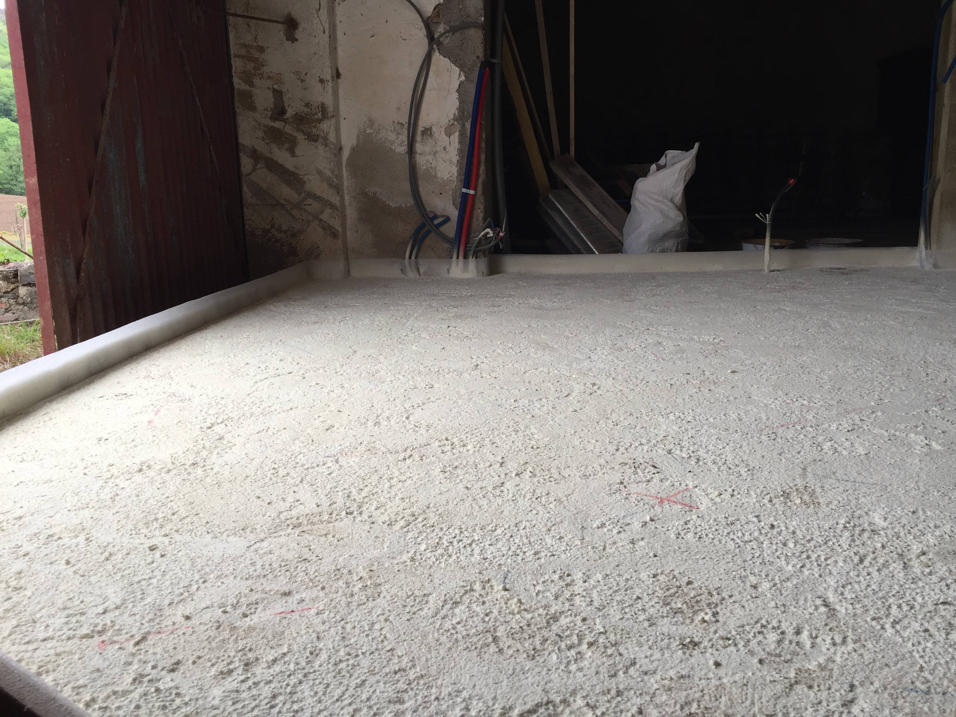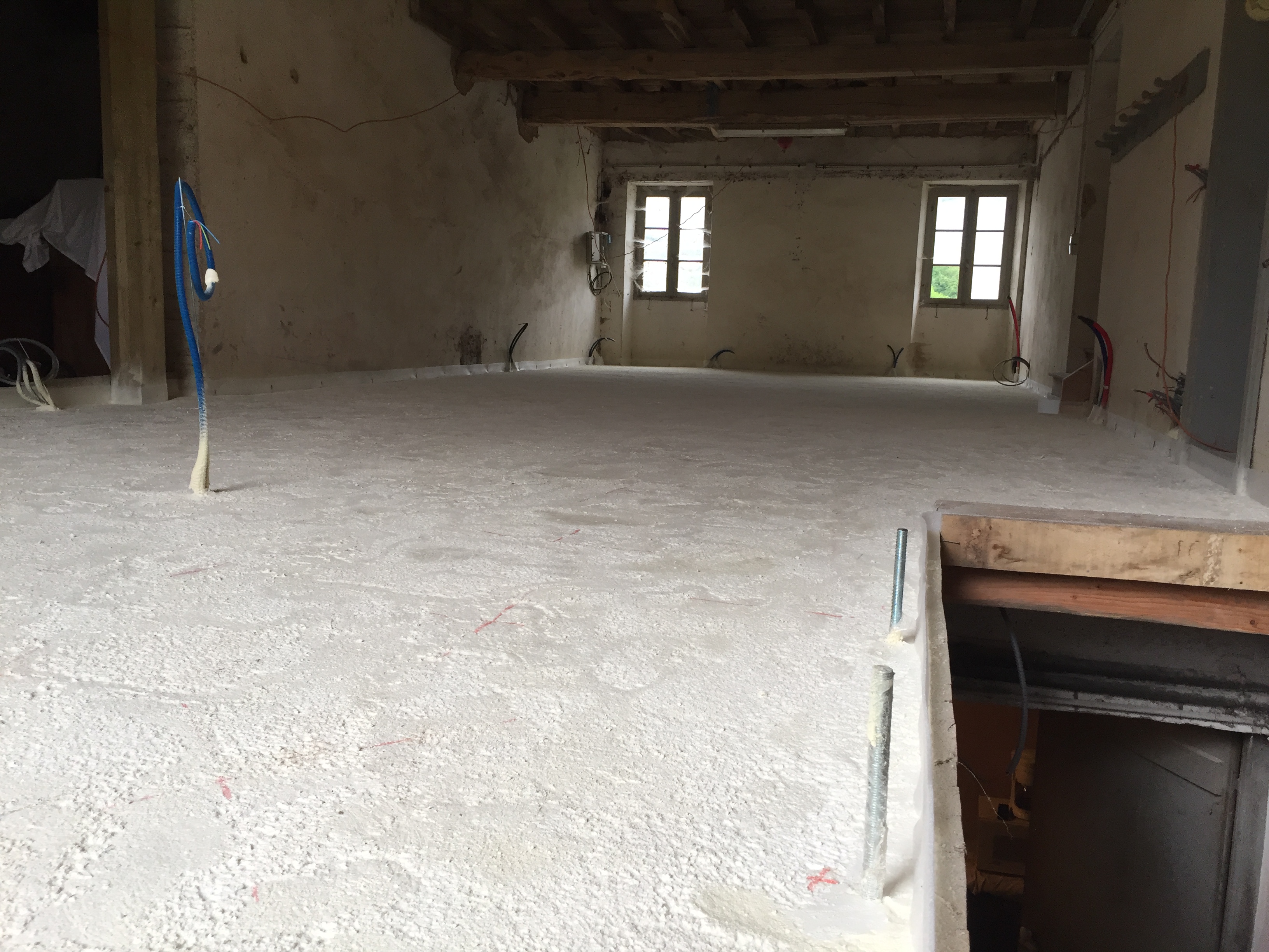 … en attendant que la mousse isolante soit projetée et que la chape liquide soit coulée !