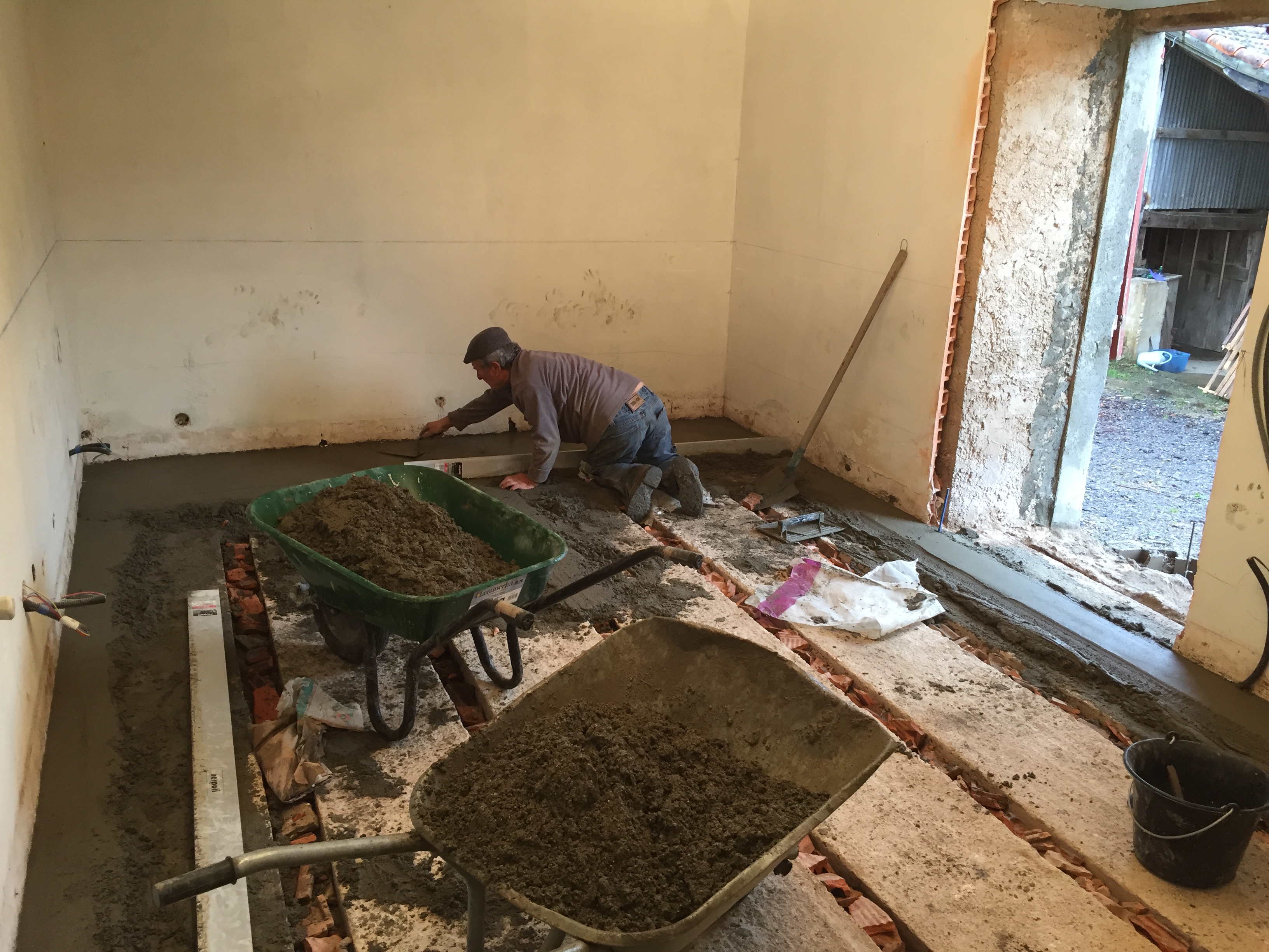 L’électricité étant terminée, on peut enfin couler les chapes ! Et avec un chef de chantier comme le notre, il ne nous aura pas fallu longtemps pour les faire !